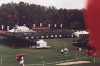 The atmosphere was electric as 3000 guests were set to arrive at 11AM, including the Governor of Ohio, the Mayor of Columbus, and celebrity golfer Tiger Woods. Phony Express began setup in a thunderstorm before 7AM to decorate tents, bleachers, entry way, walkways and country club entrances. All decorations were in place and the weather began to clear as the guests arrived at this charity fund raiser for the Tiger Woods Foundation. |