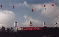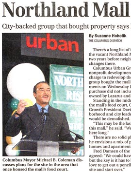 Our colorful columns became the backdrop for Mayor Michael Coleman and the Columbus Urban Growth Corporation's announcement of the redevelopment of the Northland Mall for new community uses. TV, radio & newspaper coverage focused on the balloons, which reflected the Northland area High School colors. |